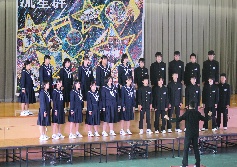 生徒会執行部を中心に、1、2年生より3年生へのメッセージや歌の贈り物がありました。